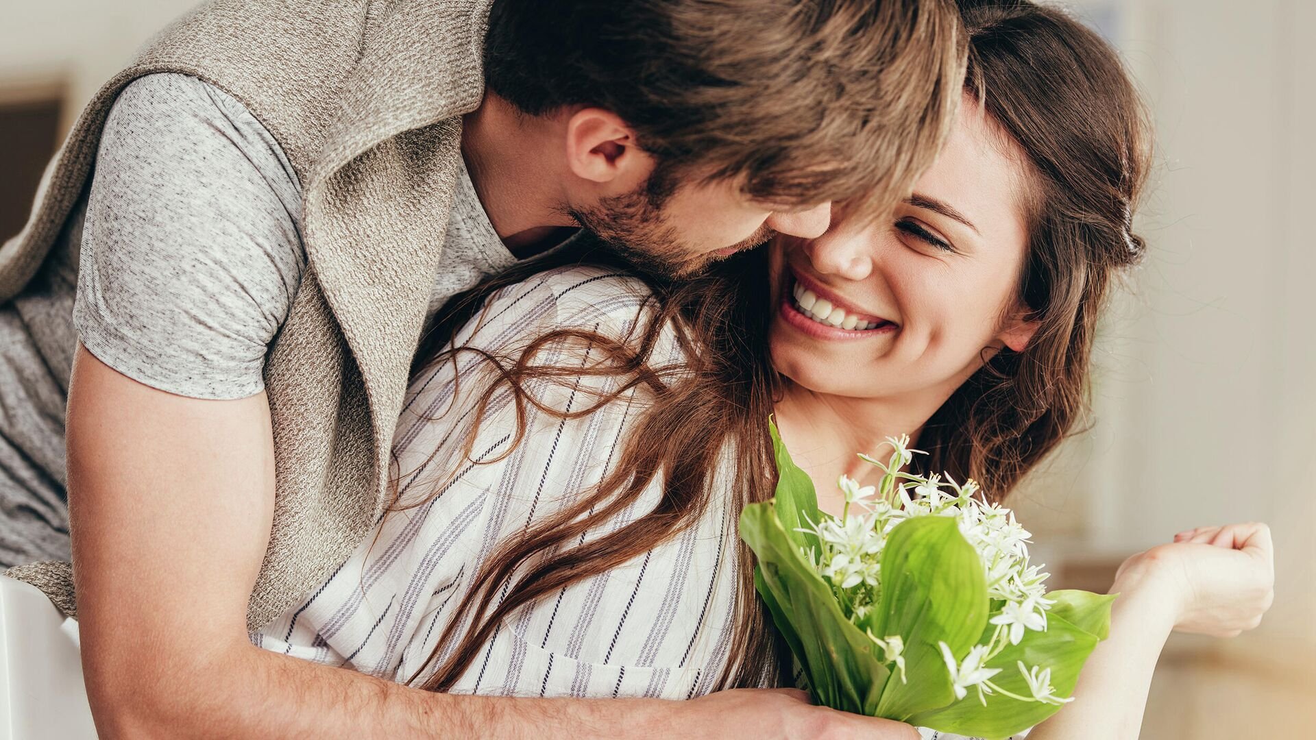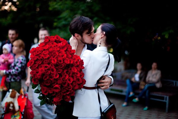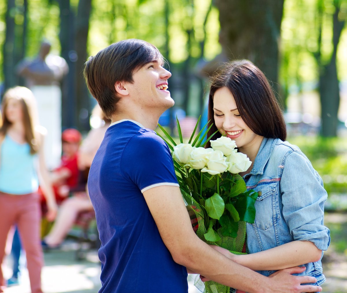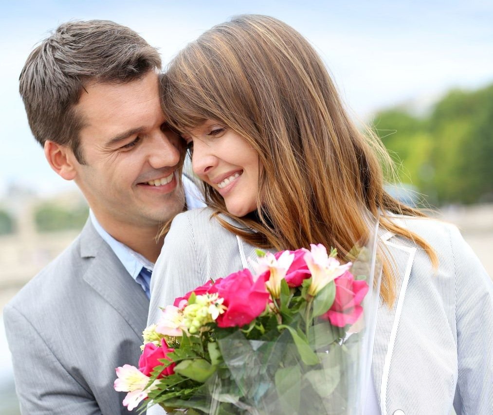 Влюбленные с цветами