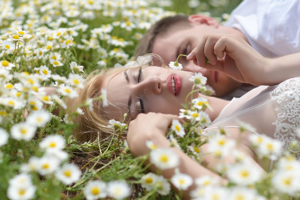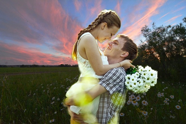 Влюбленные с ромашками