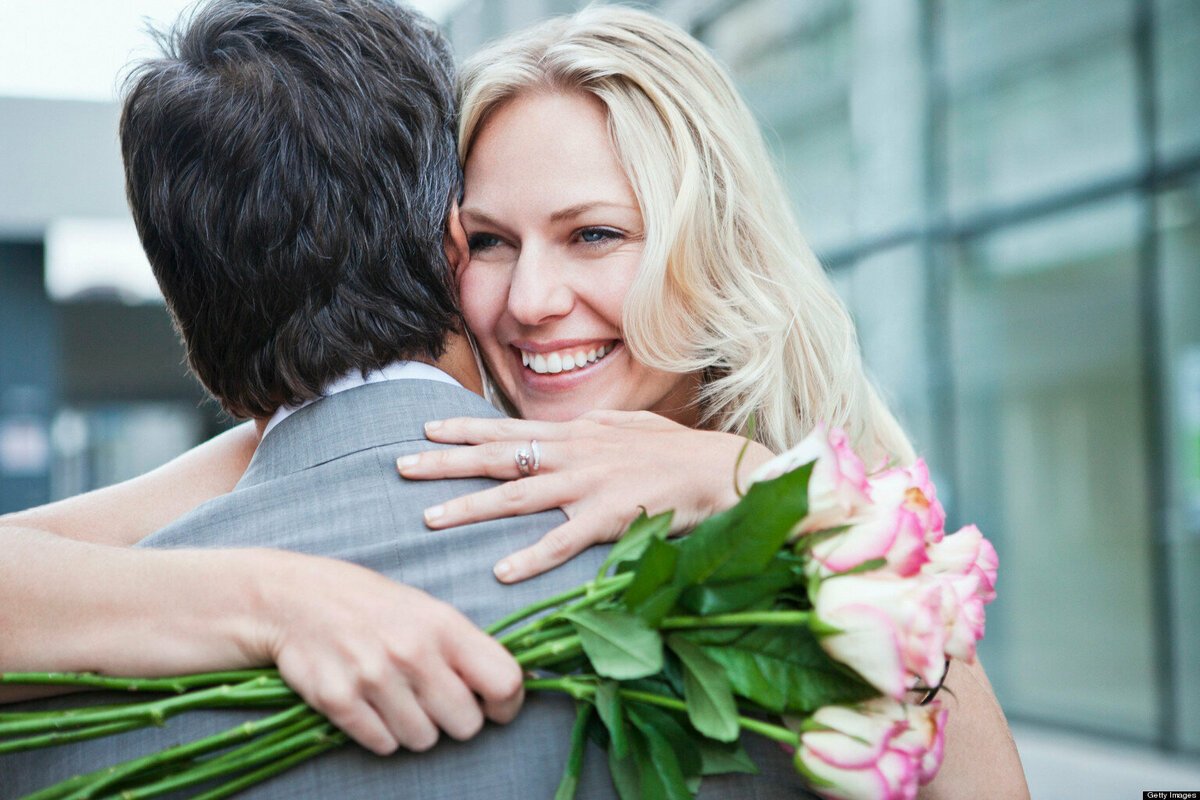 ![Мужчина дарит цветы]()