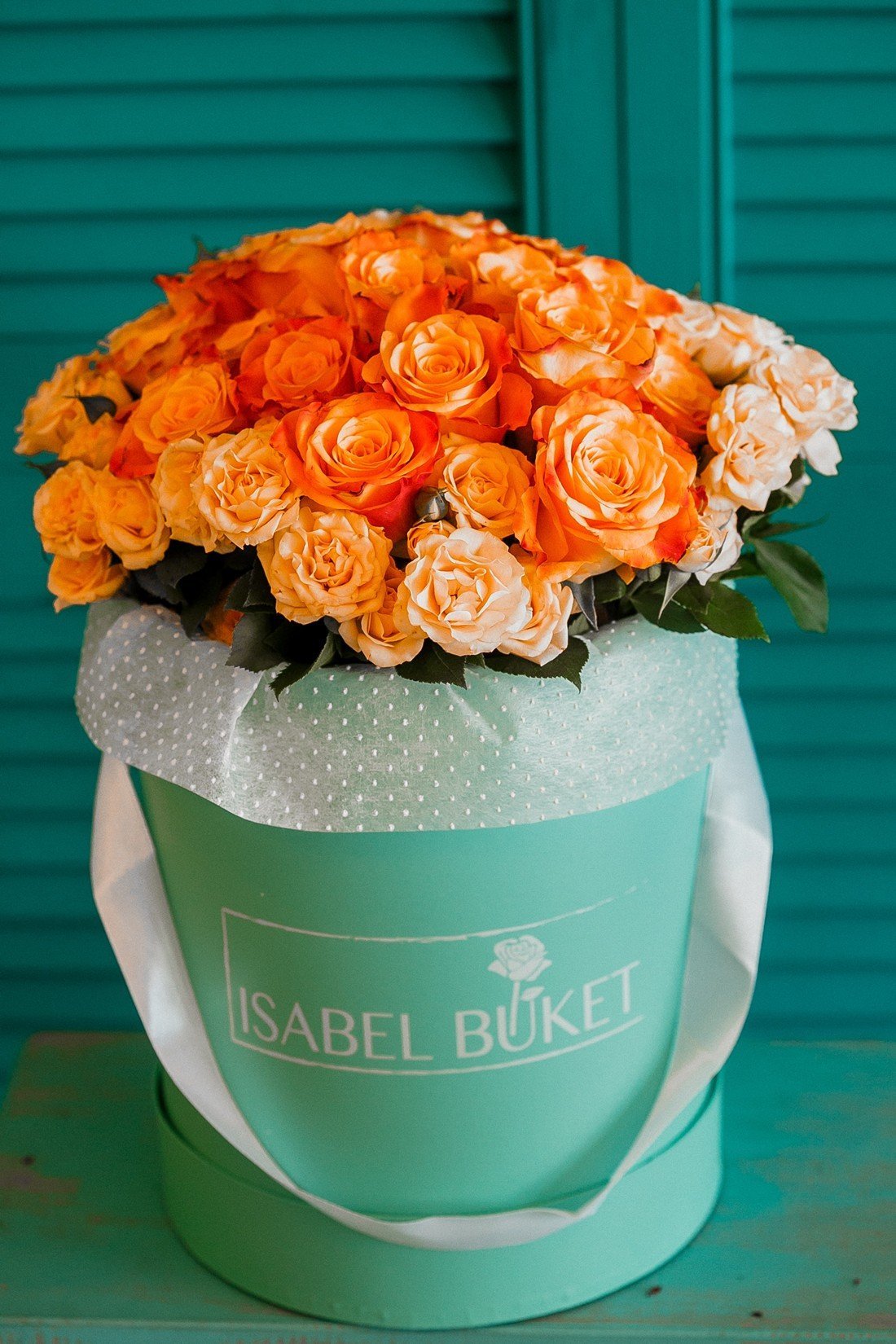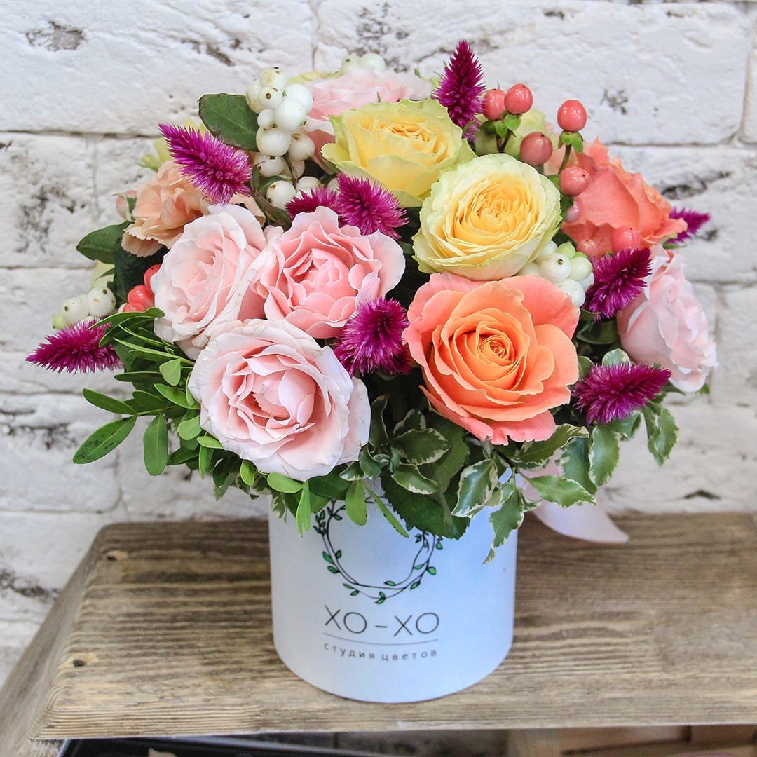 ![Розы в круглой коробке]()