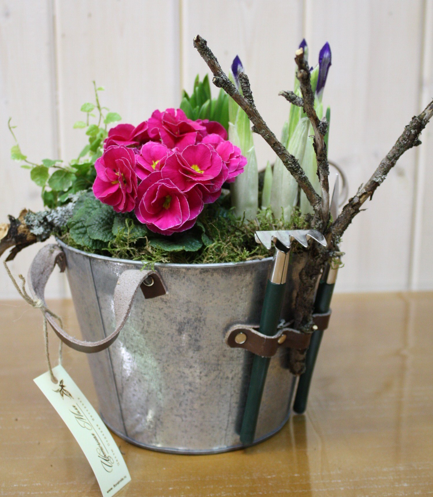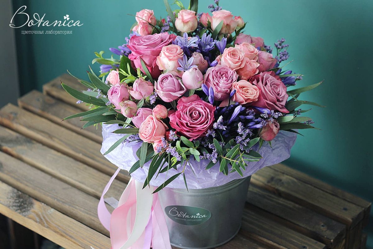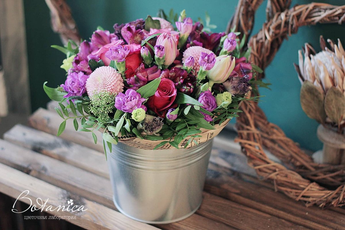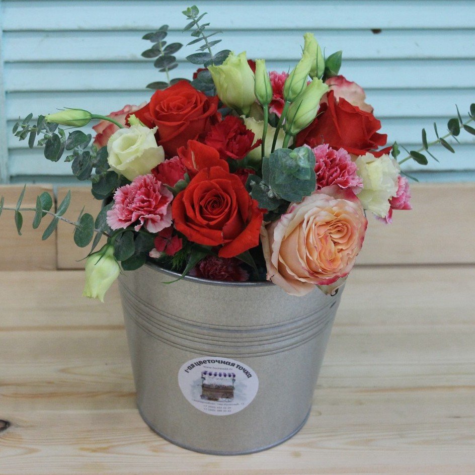 ![Цветочная композиция в ведерке]()