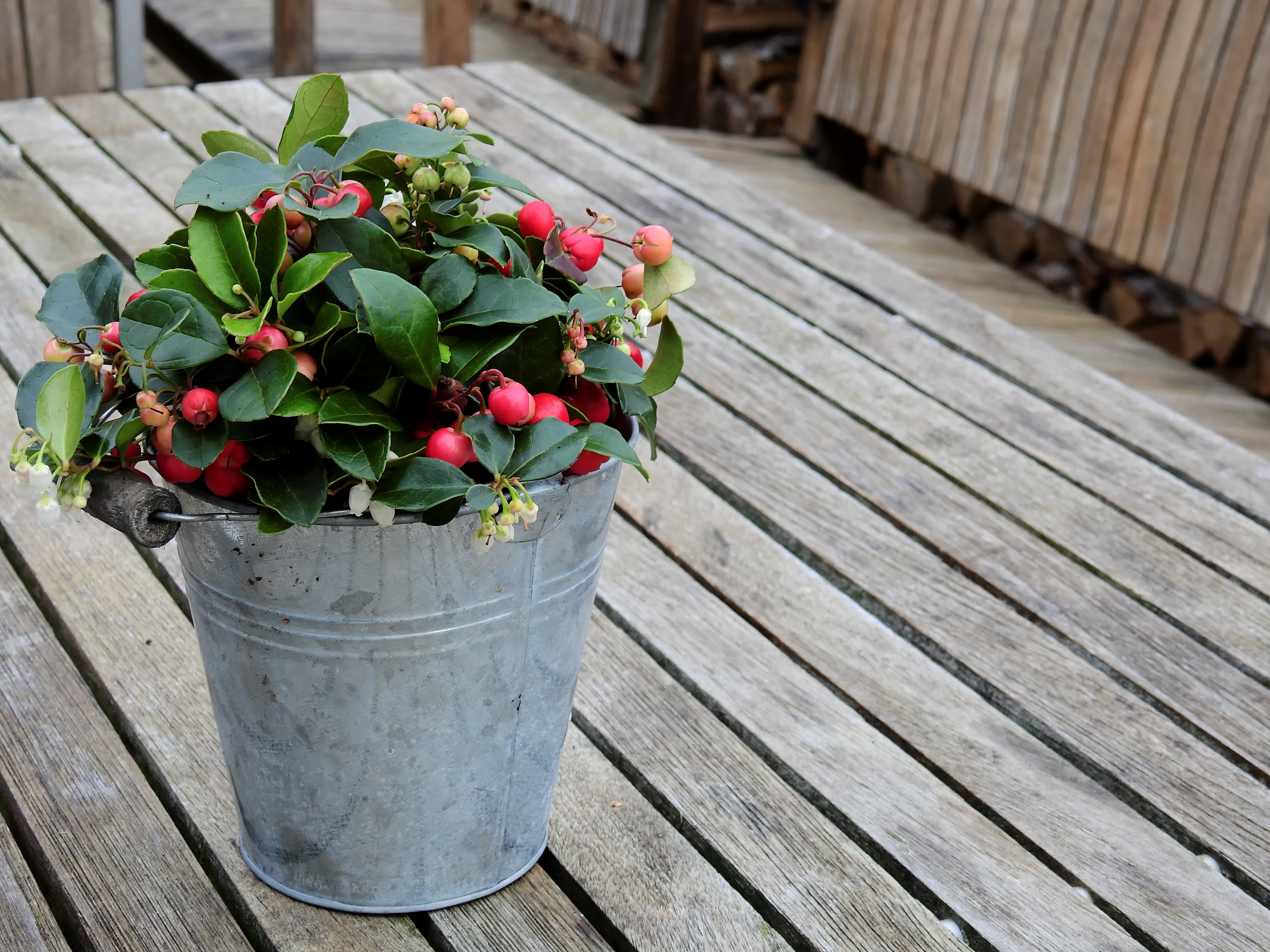 ![Цветы в ведре]()