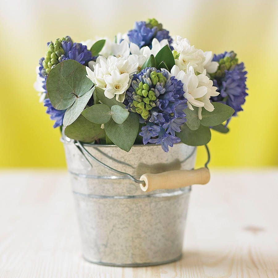 ![Композиции из цветов в ведре]()