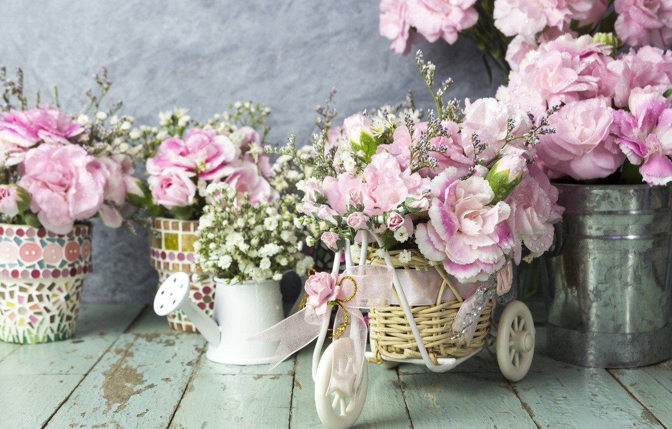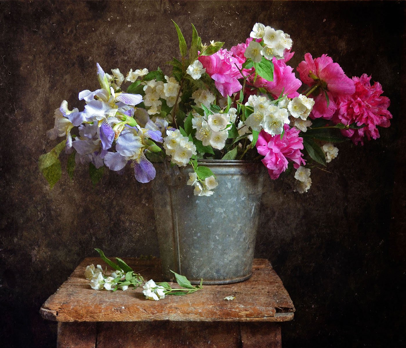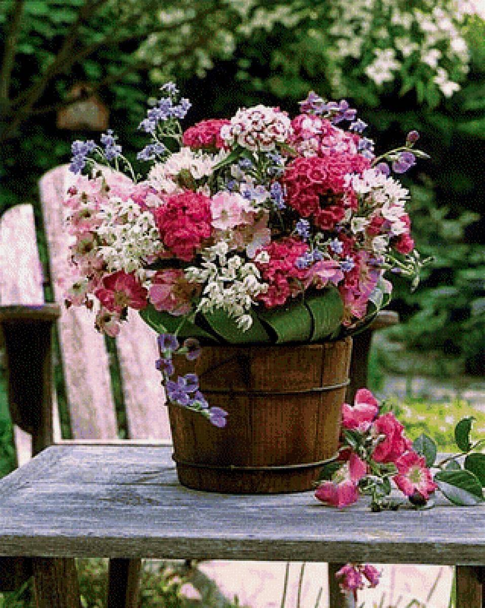 ![Цветы в винтажном ведре]()