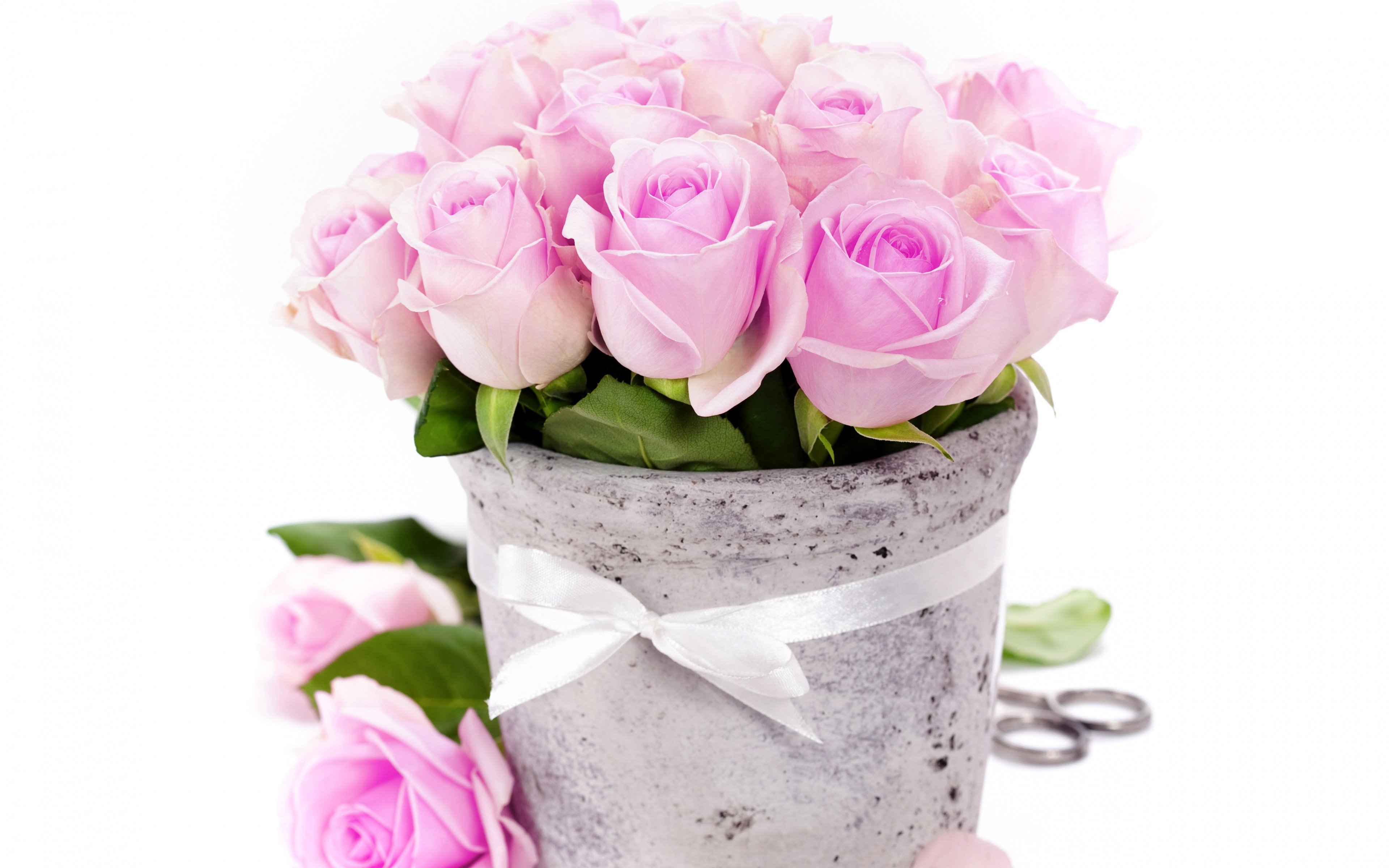 ![Розовые розы в ведре]()