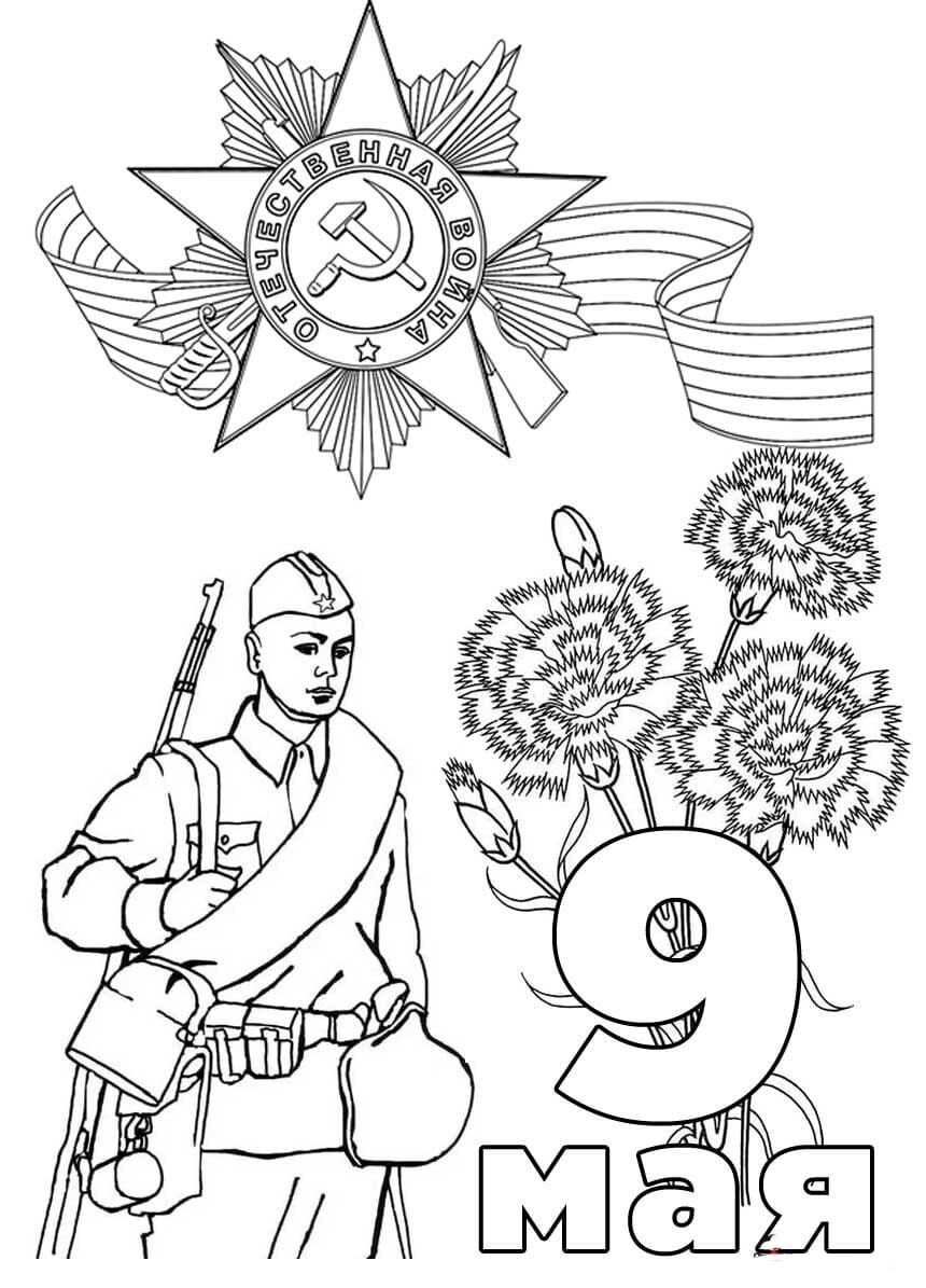![9 Мая раскраска]()