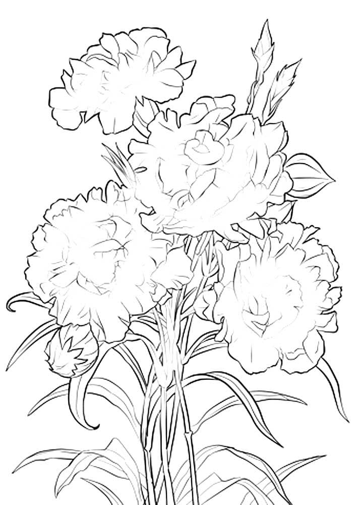 Букет гвоздик раскраска