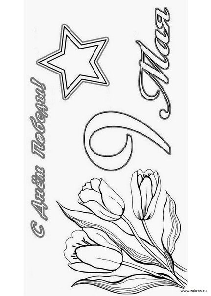 Раскрасить открытку к 9 мая