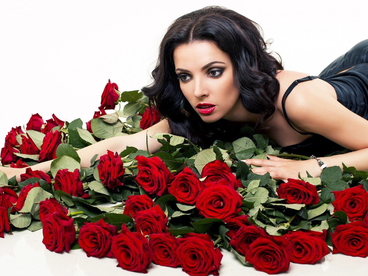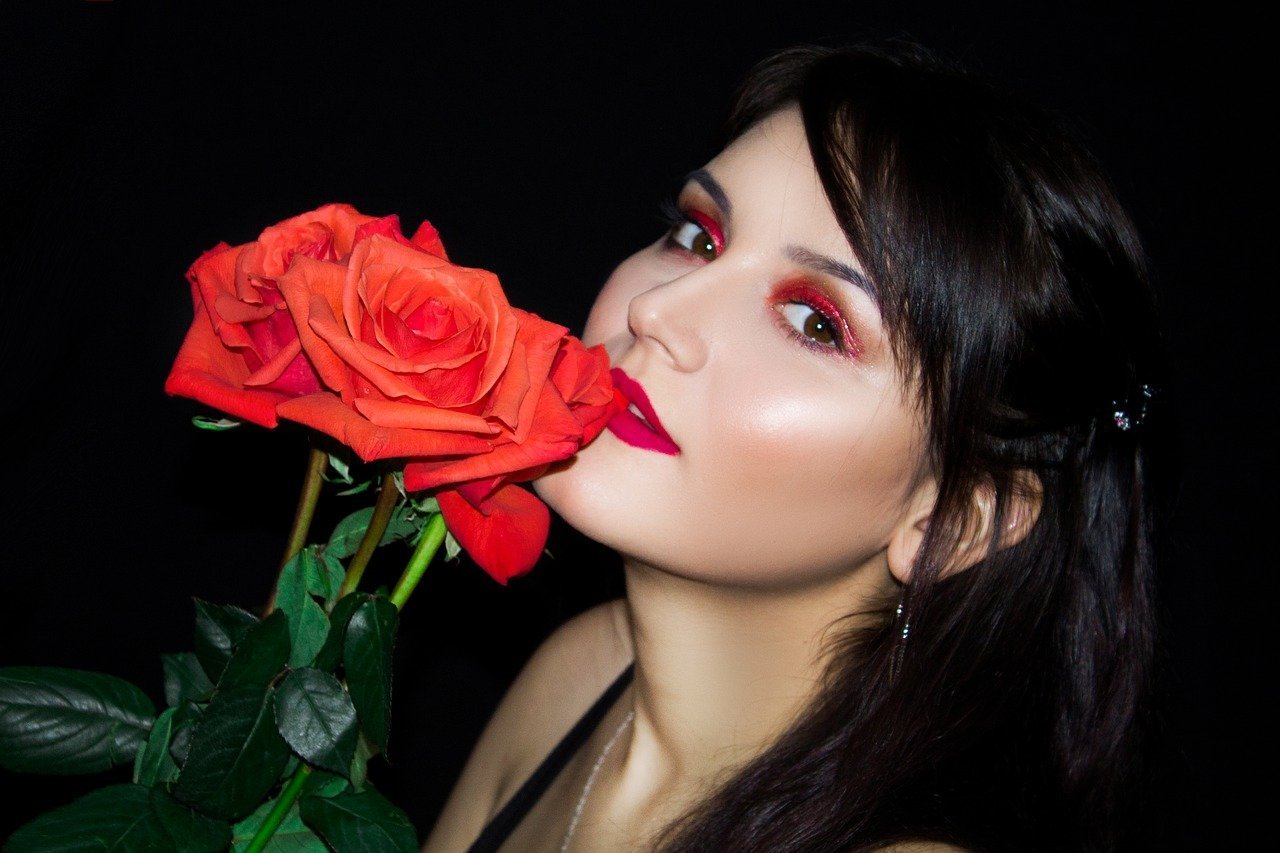 ![Девушка с красными розами]()
