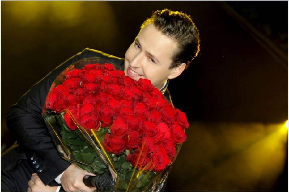 ![Знаменитости с букетами]()