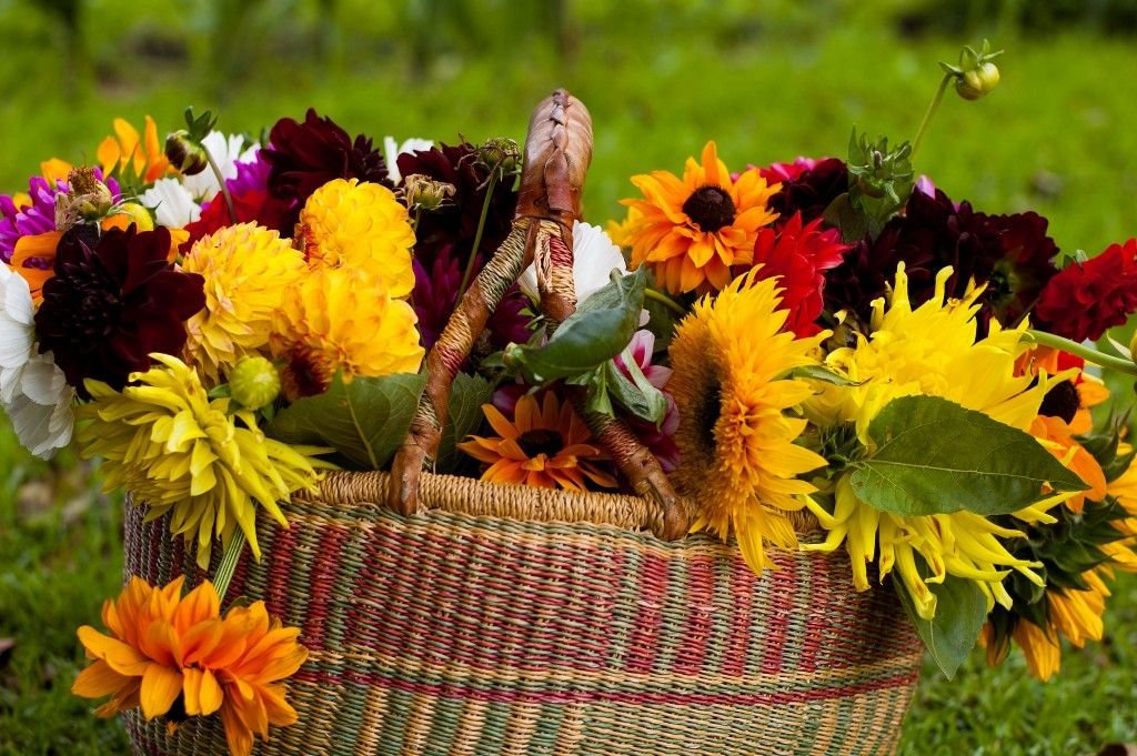 Георгины астры бархатцы
