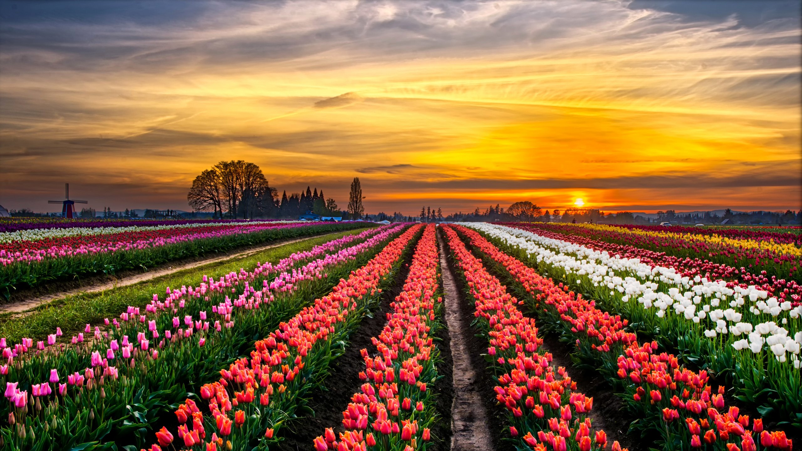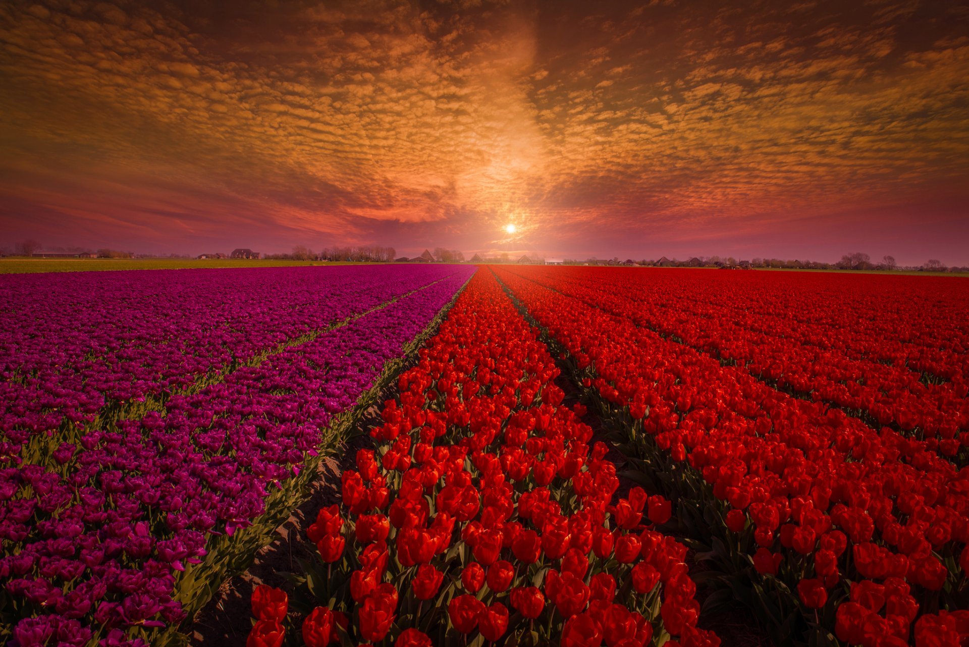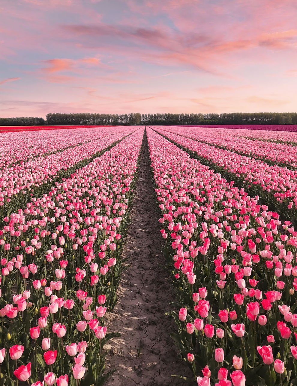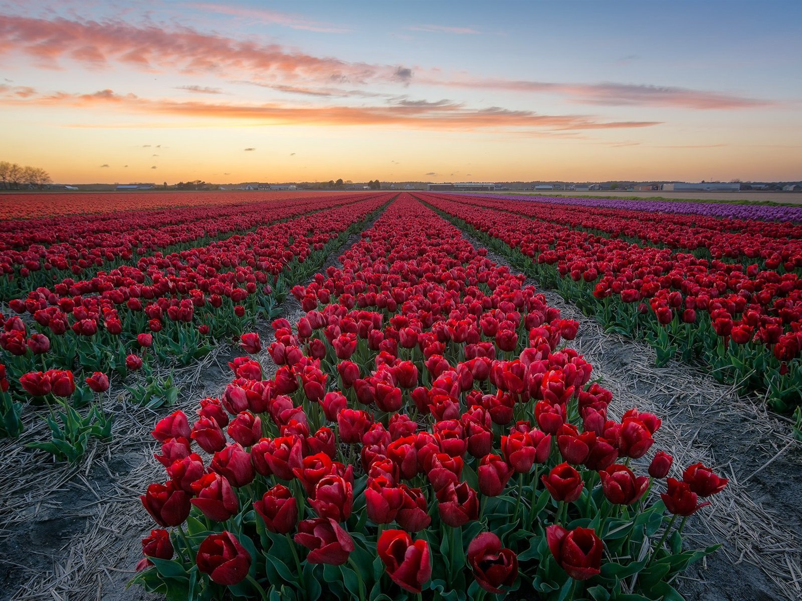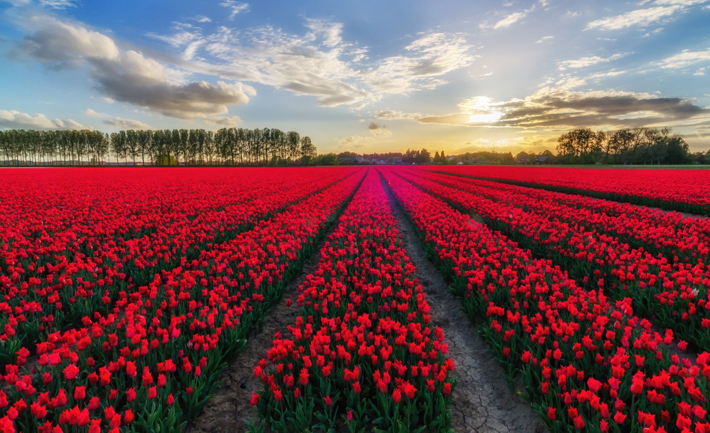 ![Тюльпановое поле Голландия закат]()