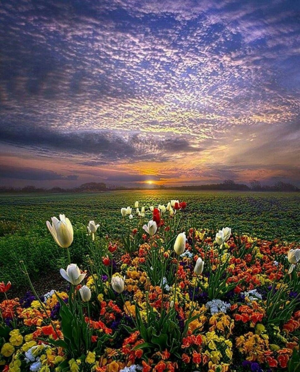 Тюльпановое поле Голландия закат