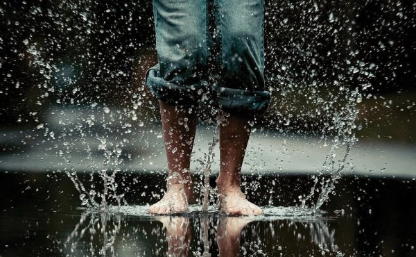 ![Человек танцует под дождем]()