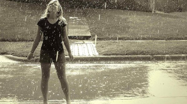 ![Девушка танцует под дождем]()