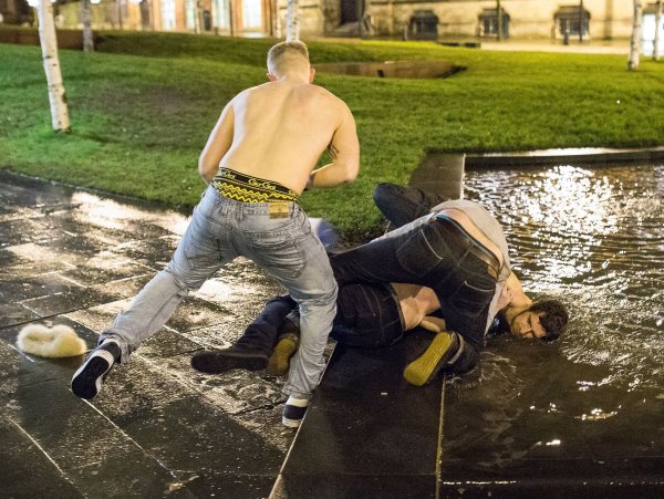 ![Человек лежит лицом в луже]()