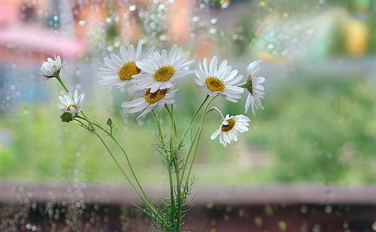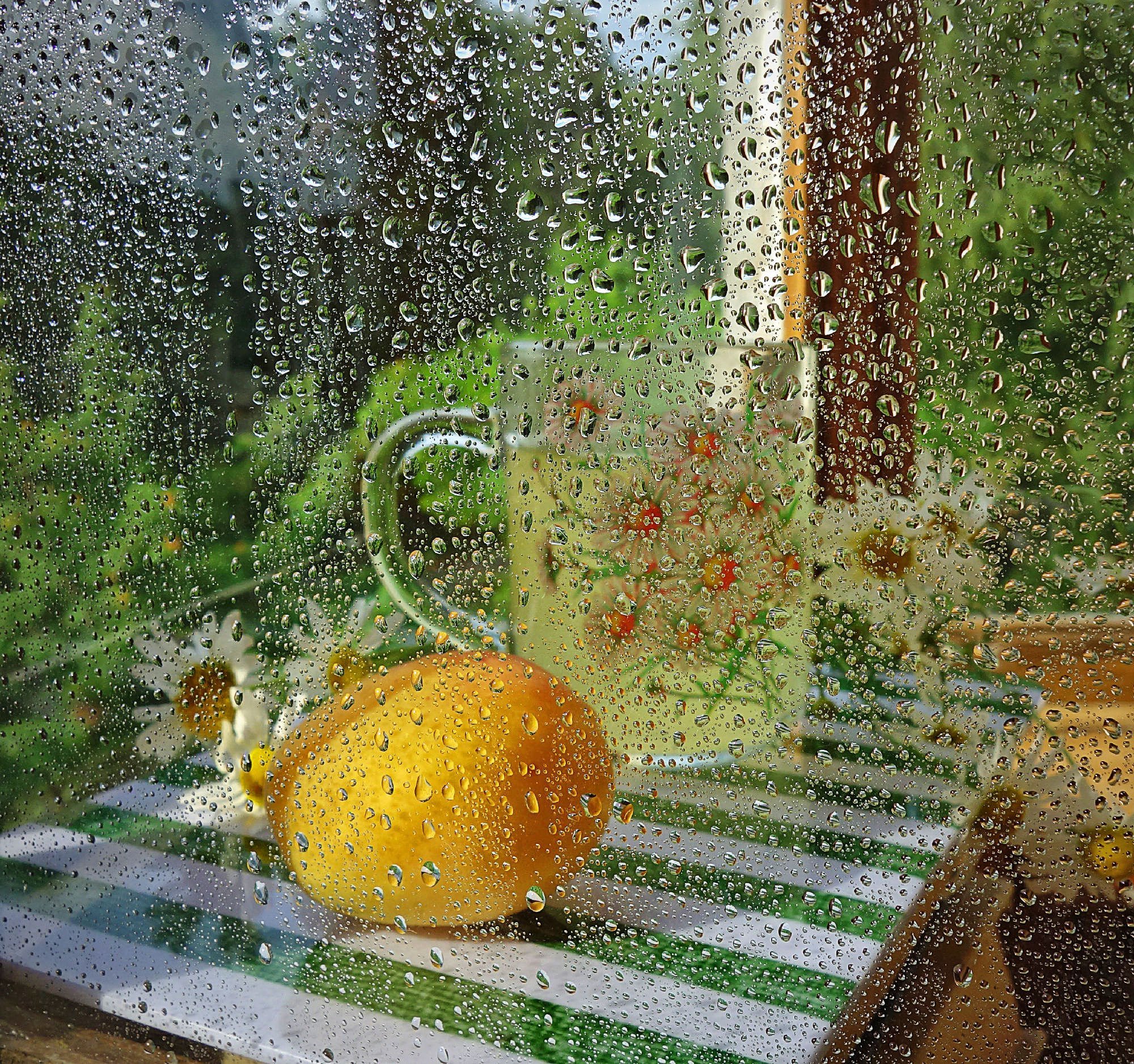 ![Цветы на дождливом окне]()