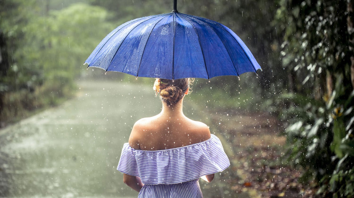 ![Зонтик под дождем]()
