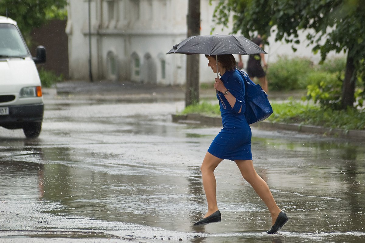 Сильный дождь летом