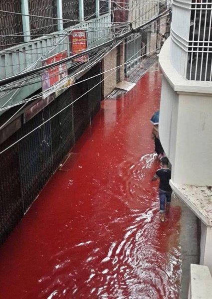 ![Кроваво красный дождь в Индии]()