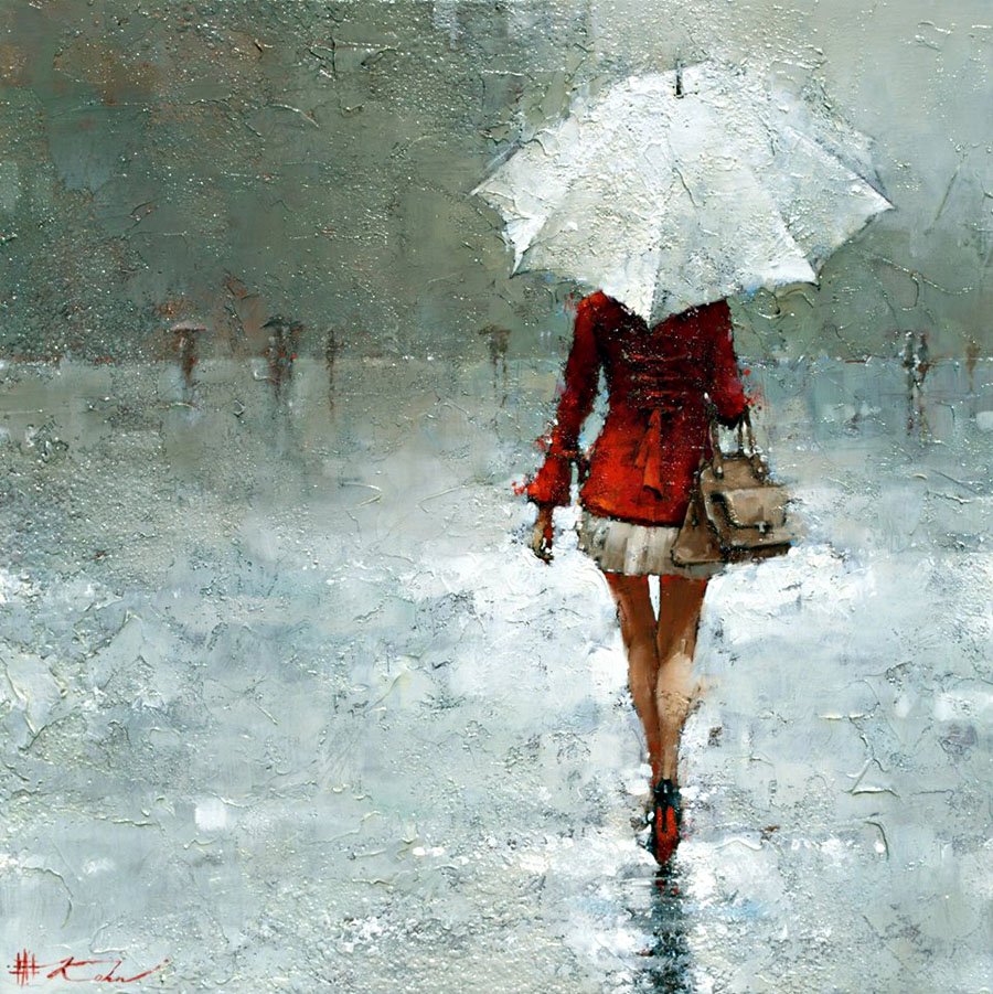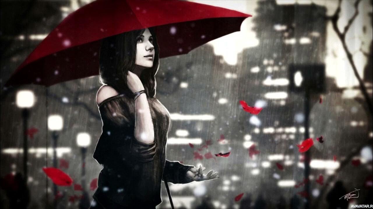 ![Уходящая девушка под дождем]()