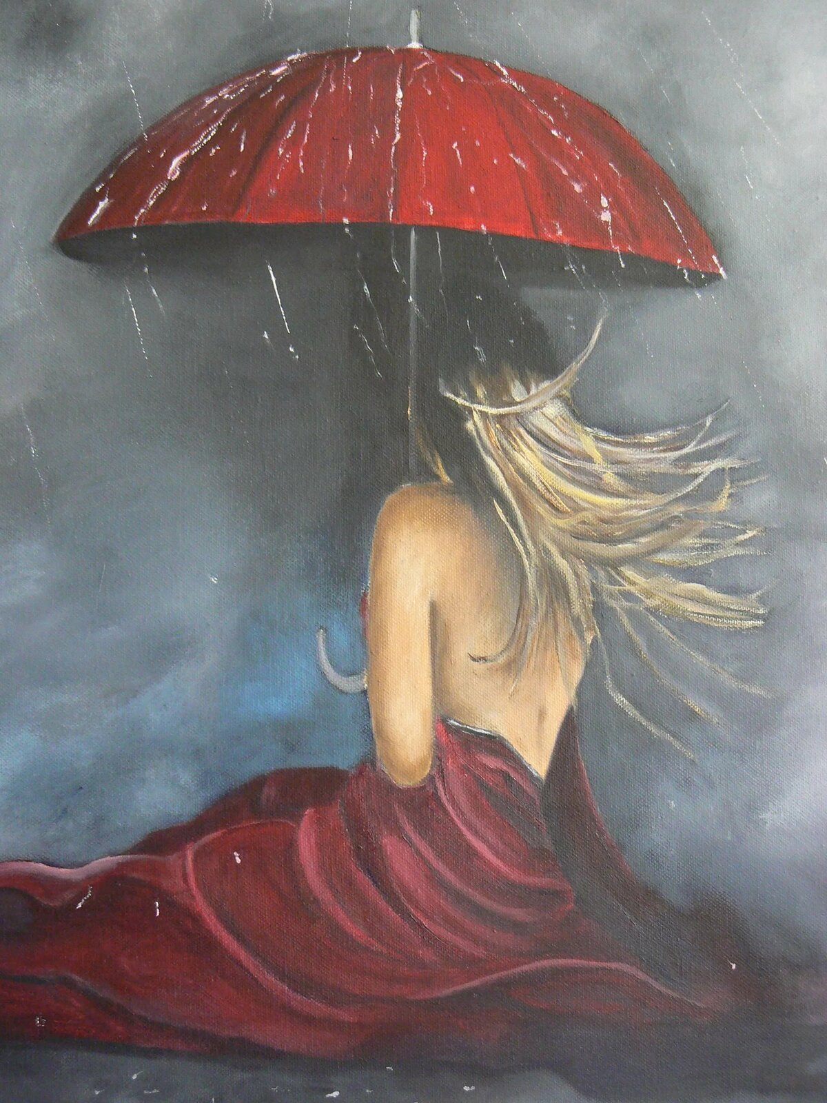 ![Девушка в Красном платье под дождем]()