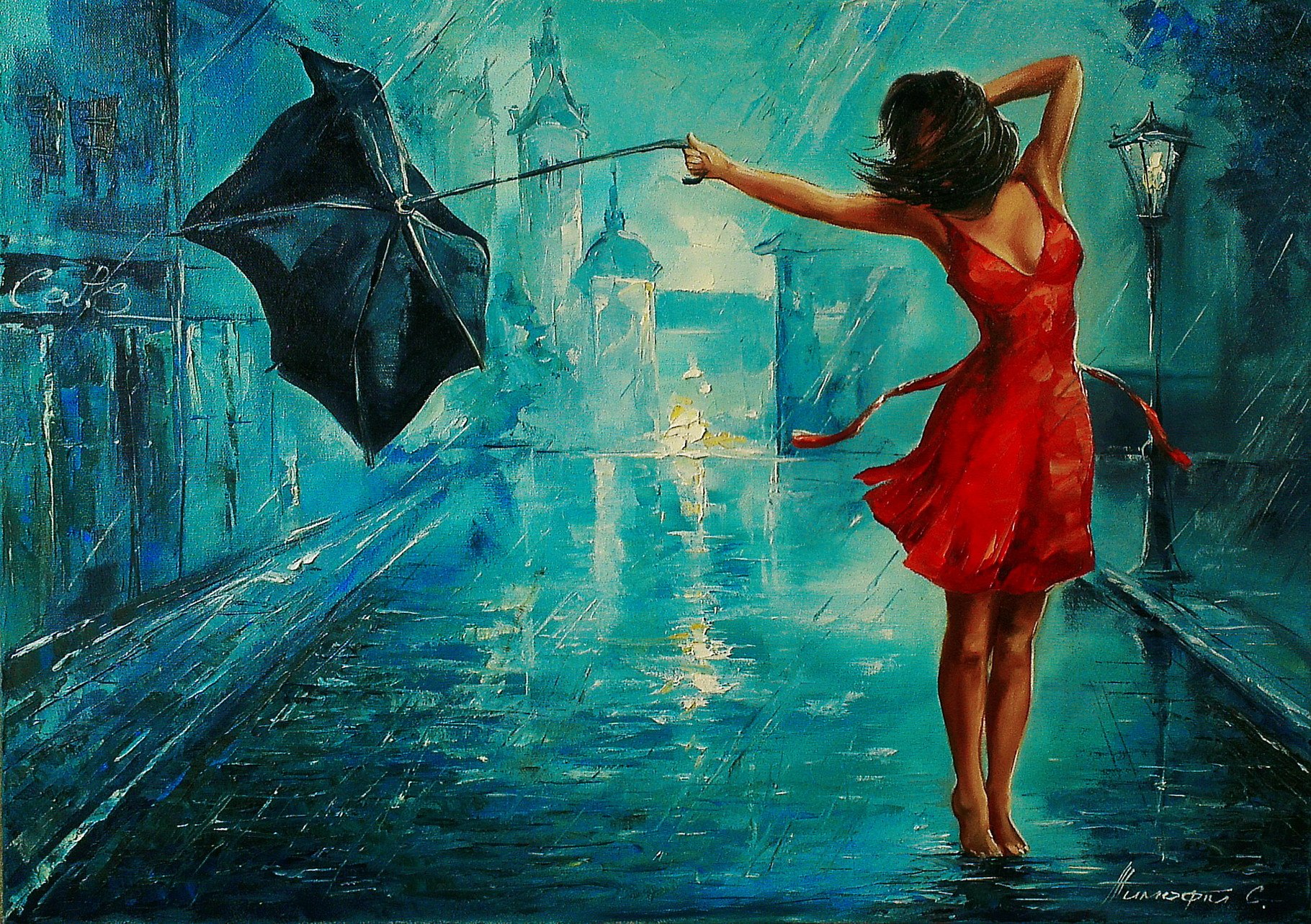 ![Танцующая под дождем]()