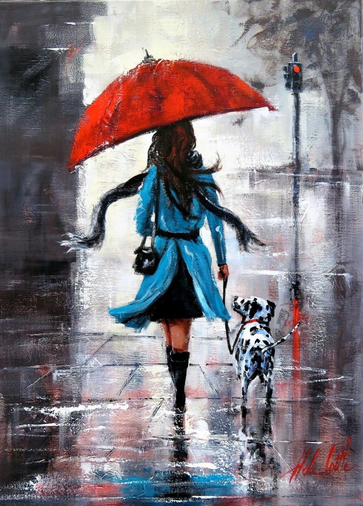 Девушка в Красном платье под дождем