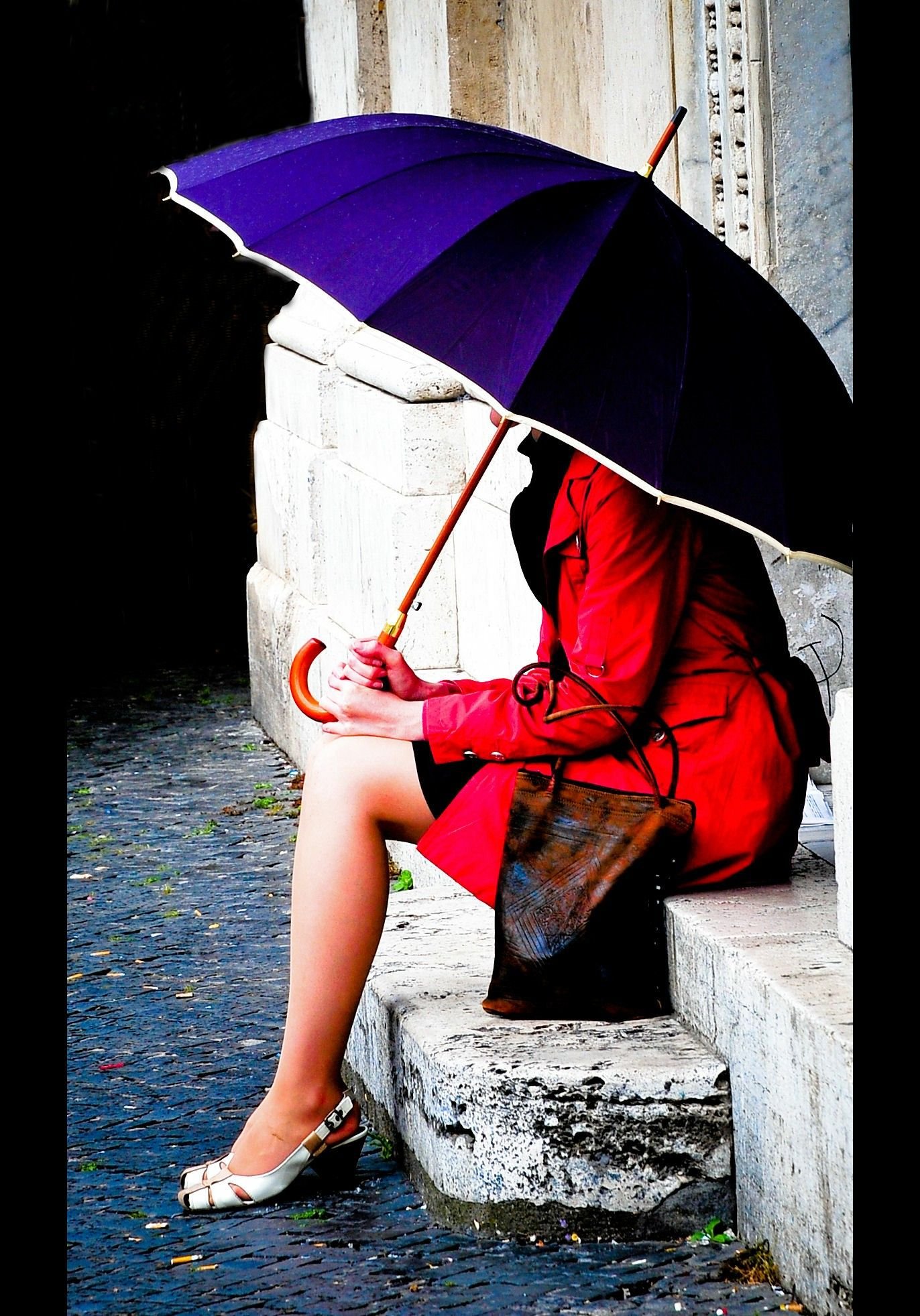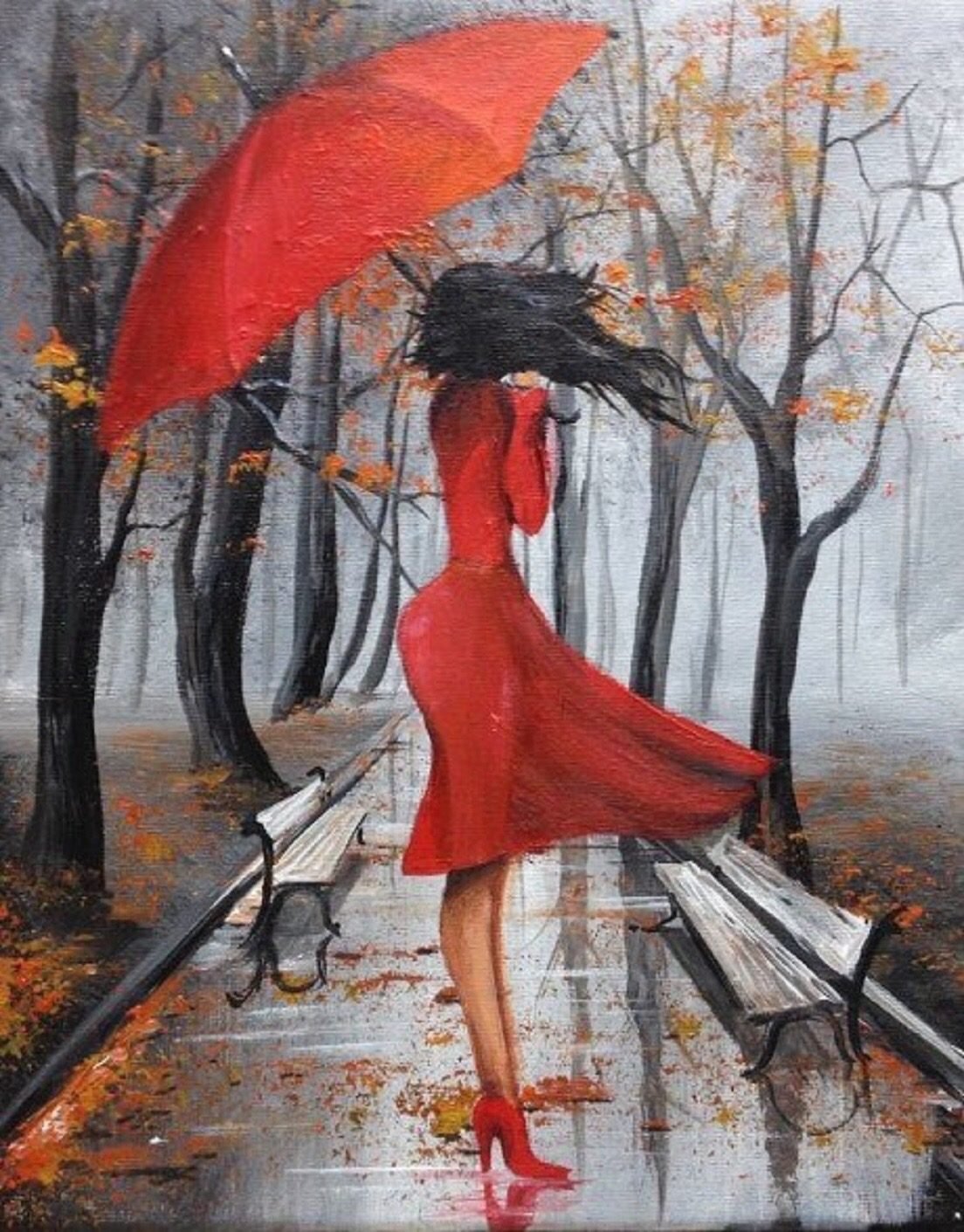 ![Девушка с красным зонтом]()