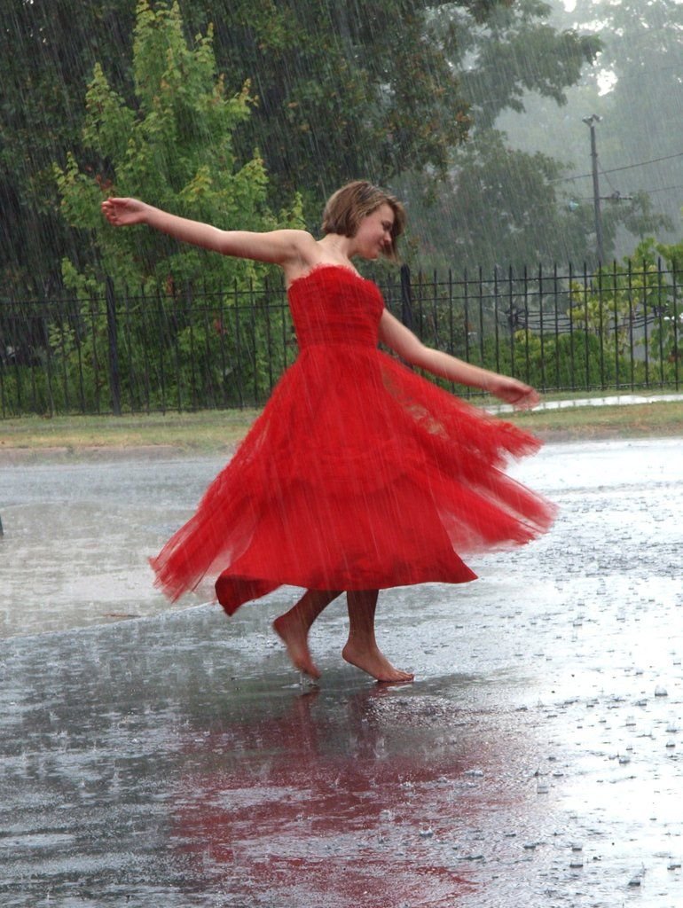 ![Девушка танцует под дождем]()