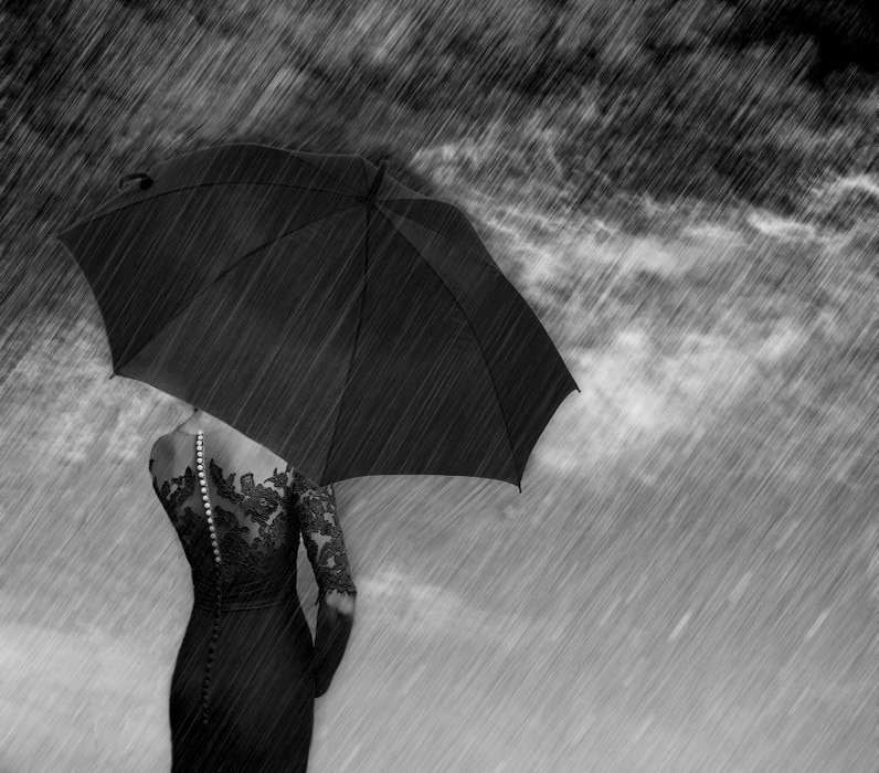 ![Чб дождь девушка]()
