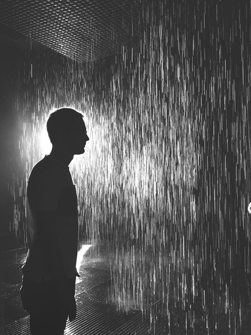 Заглянув в окно, видите темные облака на небе и слышите шум капель, падающих на землю. Вдали проглядывает одинокий мужчина, который несется под дождем без зонта или непогодной одежды. Его лицо отражает смутное состояние и грусть, словно он затерялся в своих мыслях под этой ненастной погодой. Возможно, это момент, когда он ощущает особую связь с природой, когда дождь стирает все боли и переживания, и он просто наслаждается холодными каплями, позволяя им скатываться по его щекам. Эта картинка передает некую меланхолию и загадочность, заставляя зрителя задуматься о смысле жизни и ее необъяснимых поворотах.