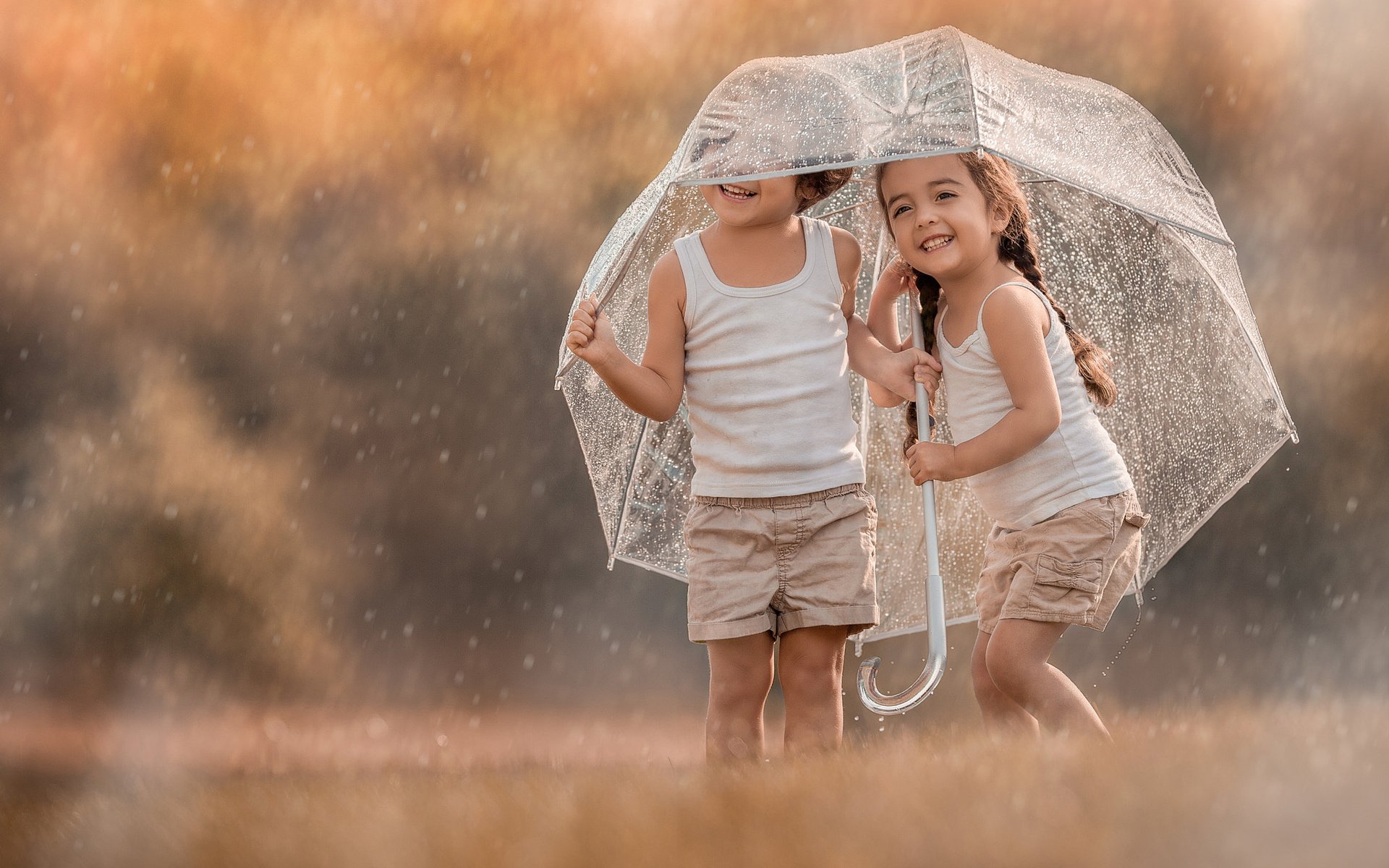 Двое под зонтиком дети