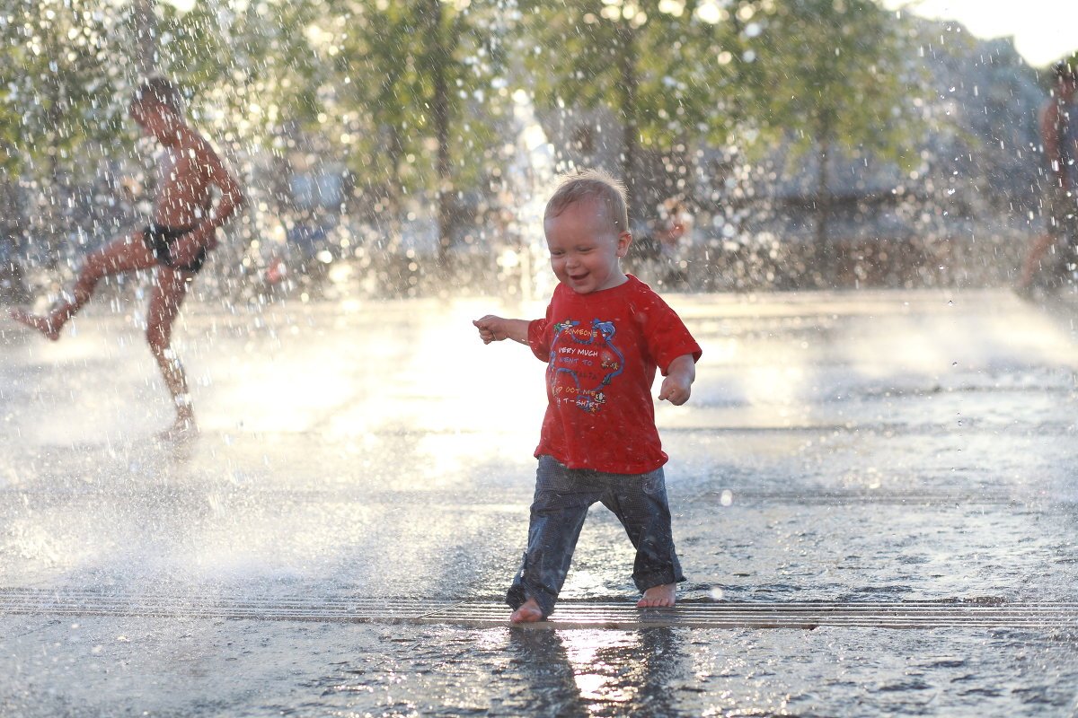 ![Дети брызгаются водой]()