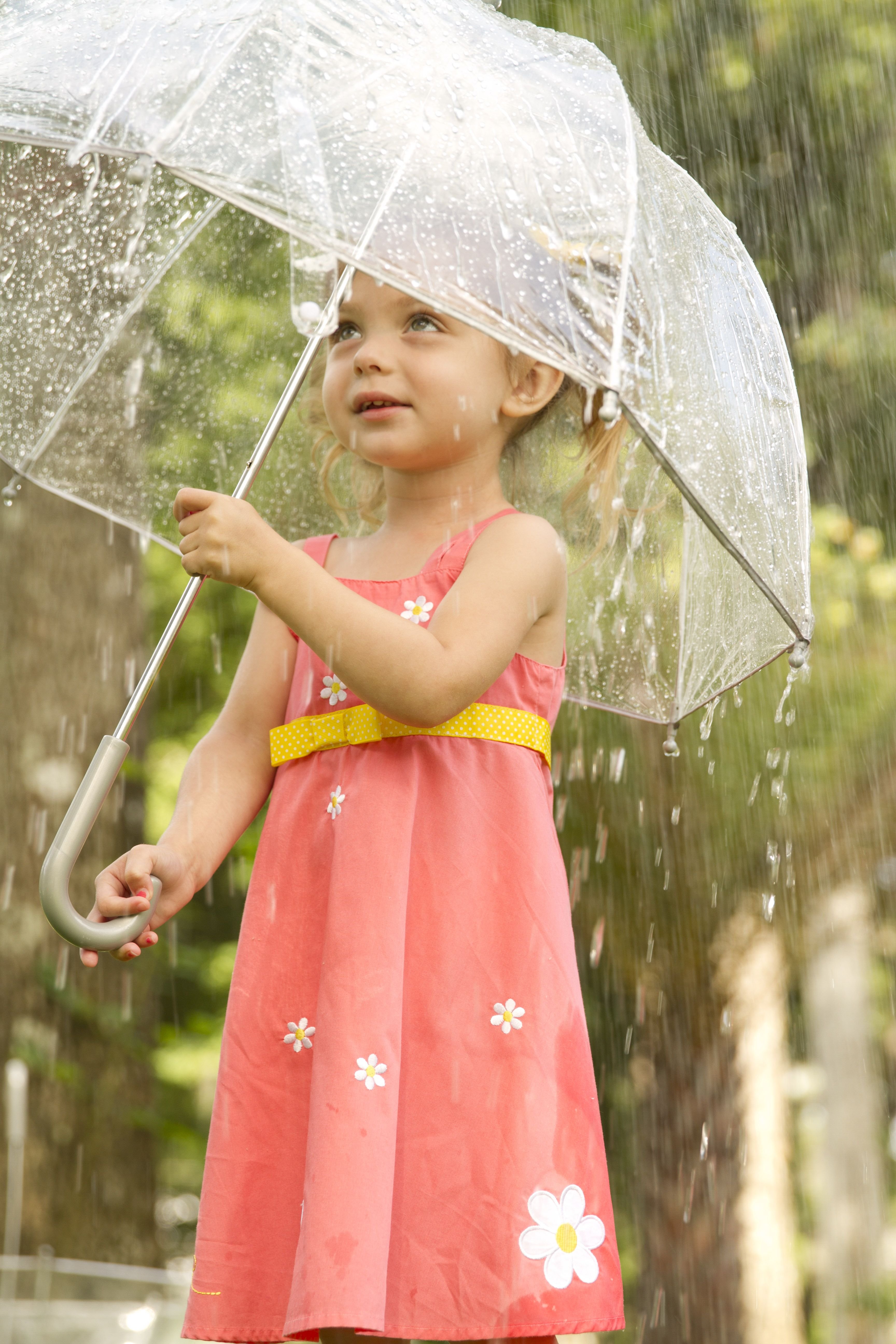 Девочка под дождем с зонтиком
