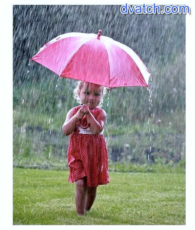 ![Девочка под дождем]()