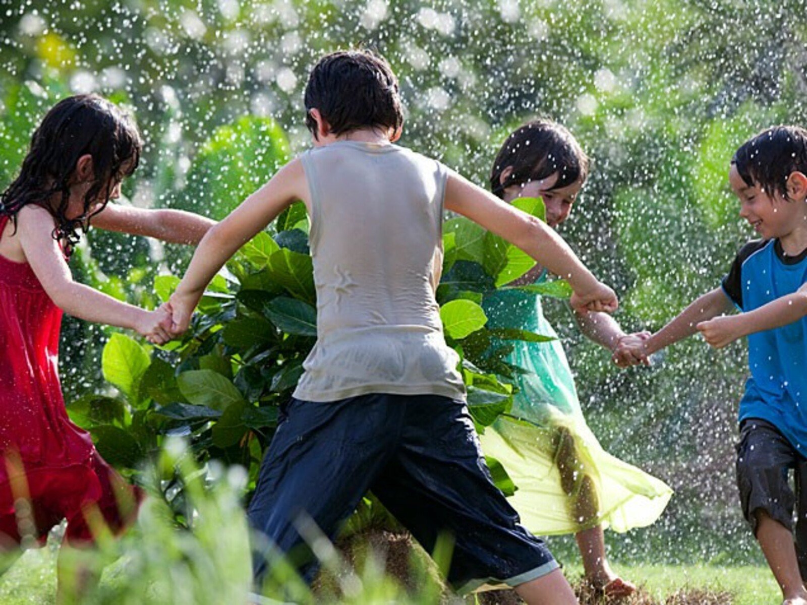 ![Дети бегут под дождем]()