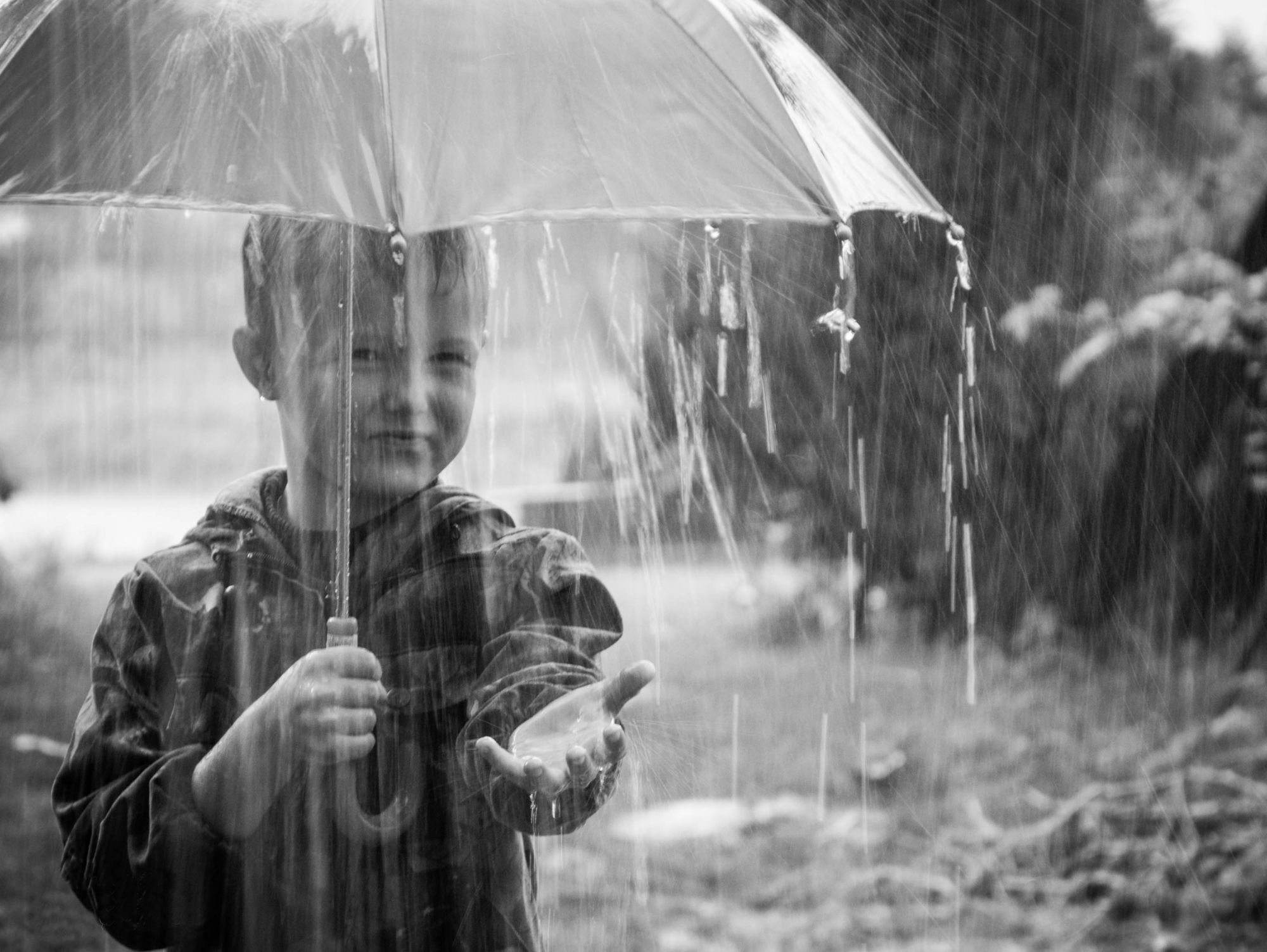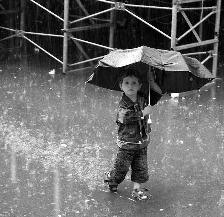 ![Мальчик под дождем]()