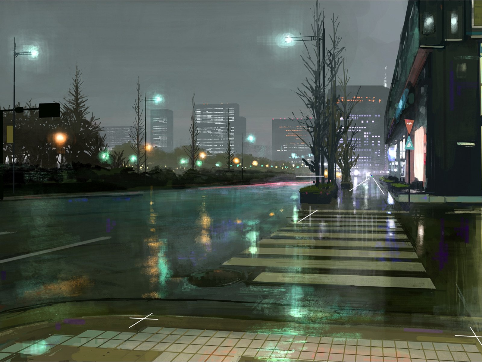 ![Ночной город после дождя]()
