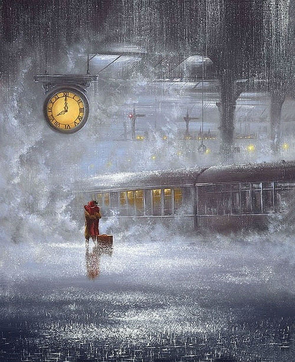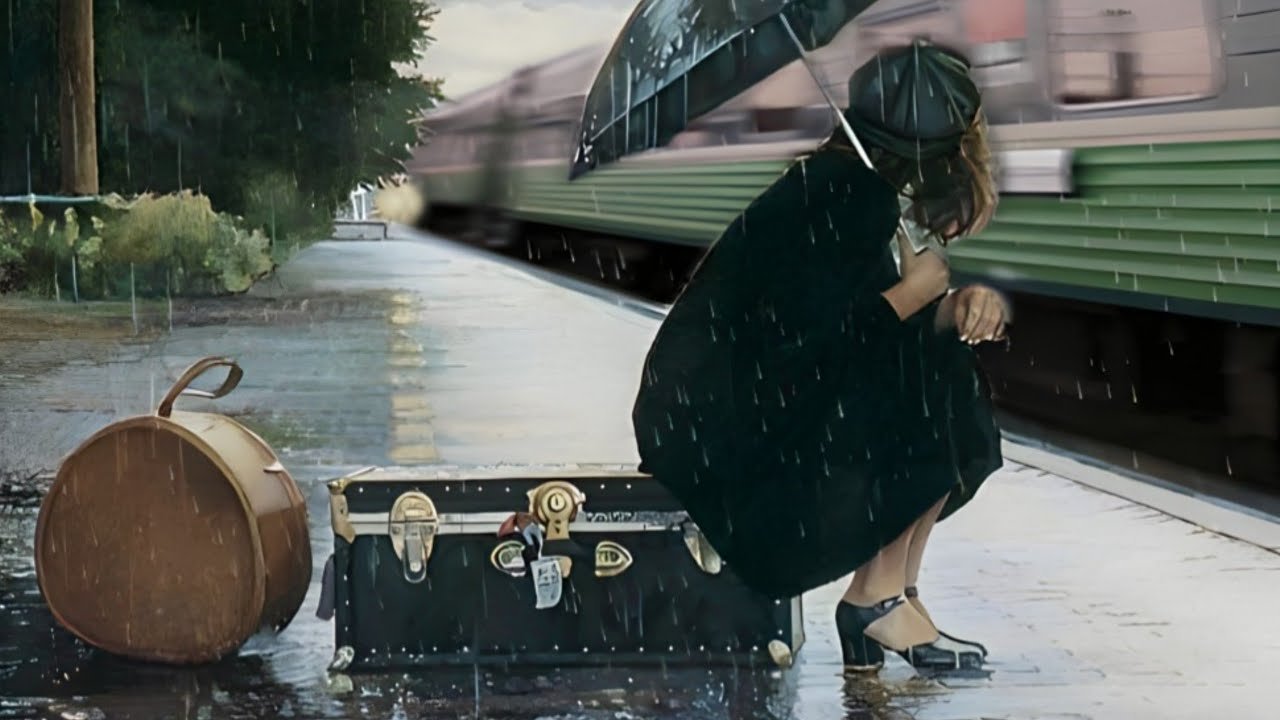 Девушка на вокзале под дождем