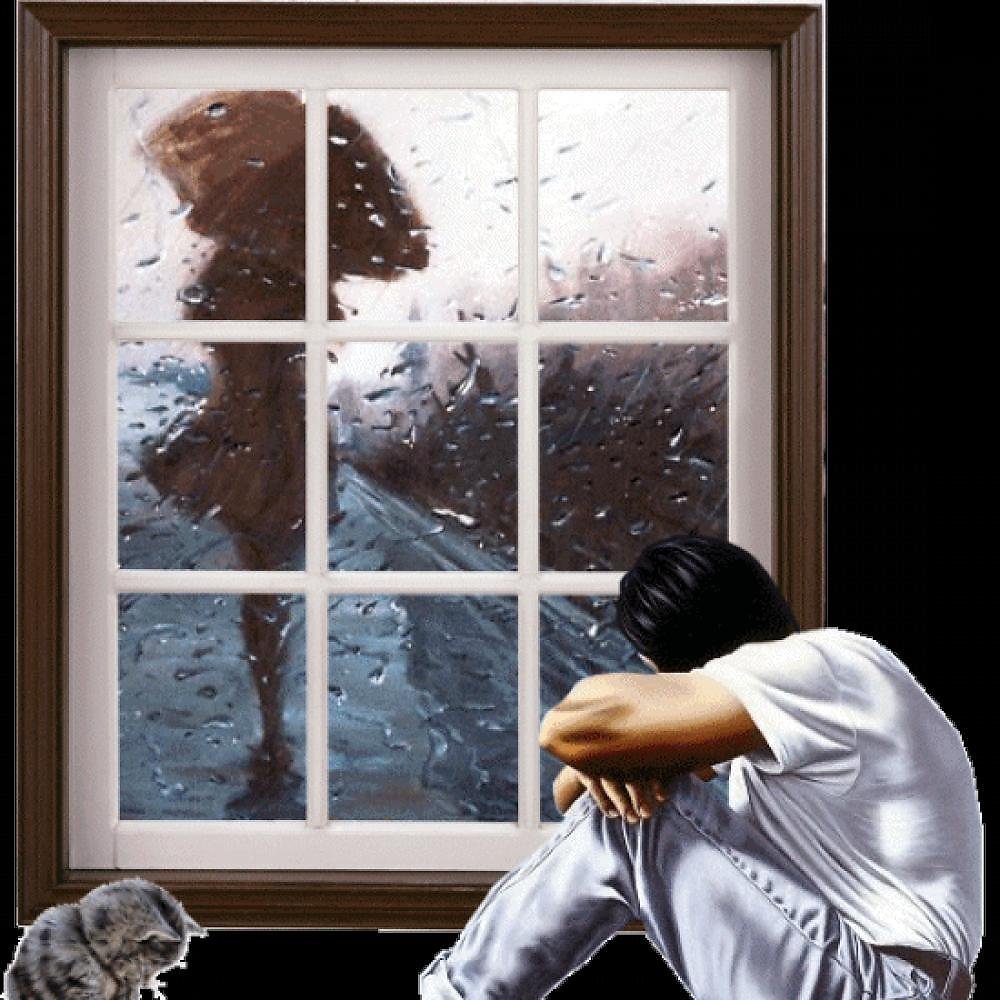 ![Женщина у окна дождь]()