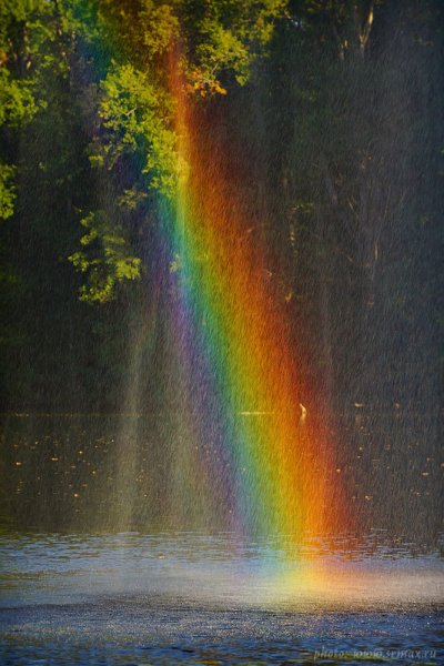 ![Радуга в брызгах фонтана]()