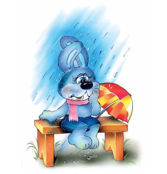 ![Заяц под дождиком]()