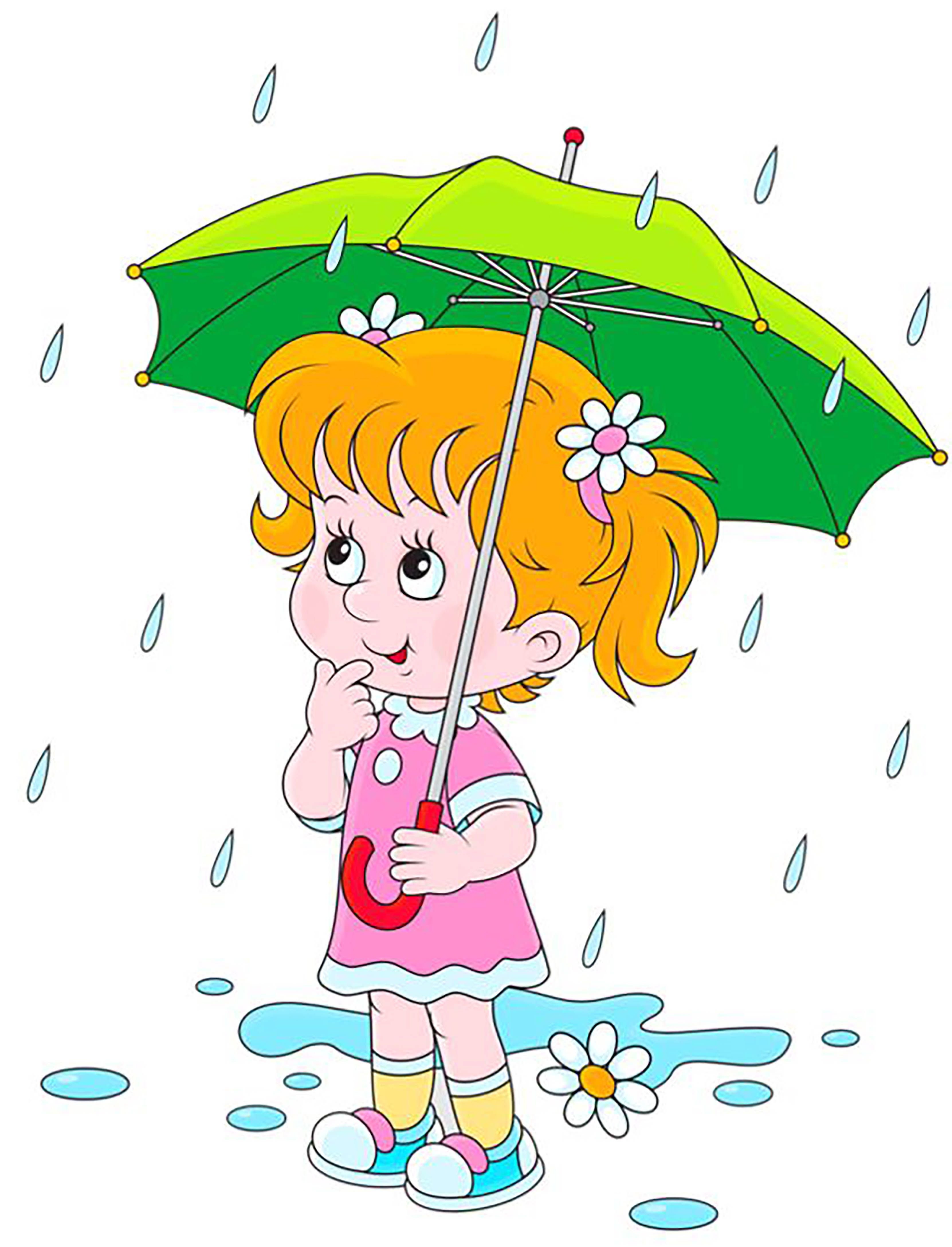 Дождик и ребенок мультяшный