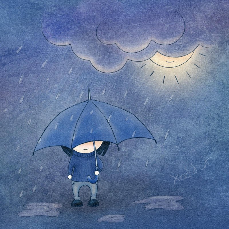 ![Человечек под дождем]()