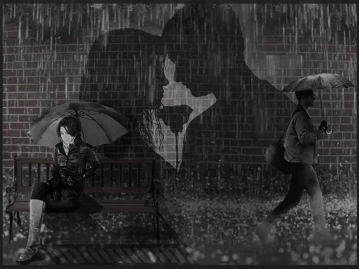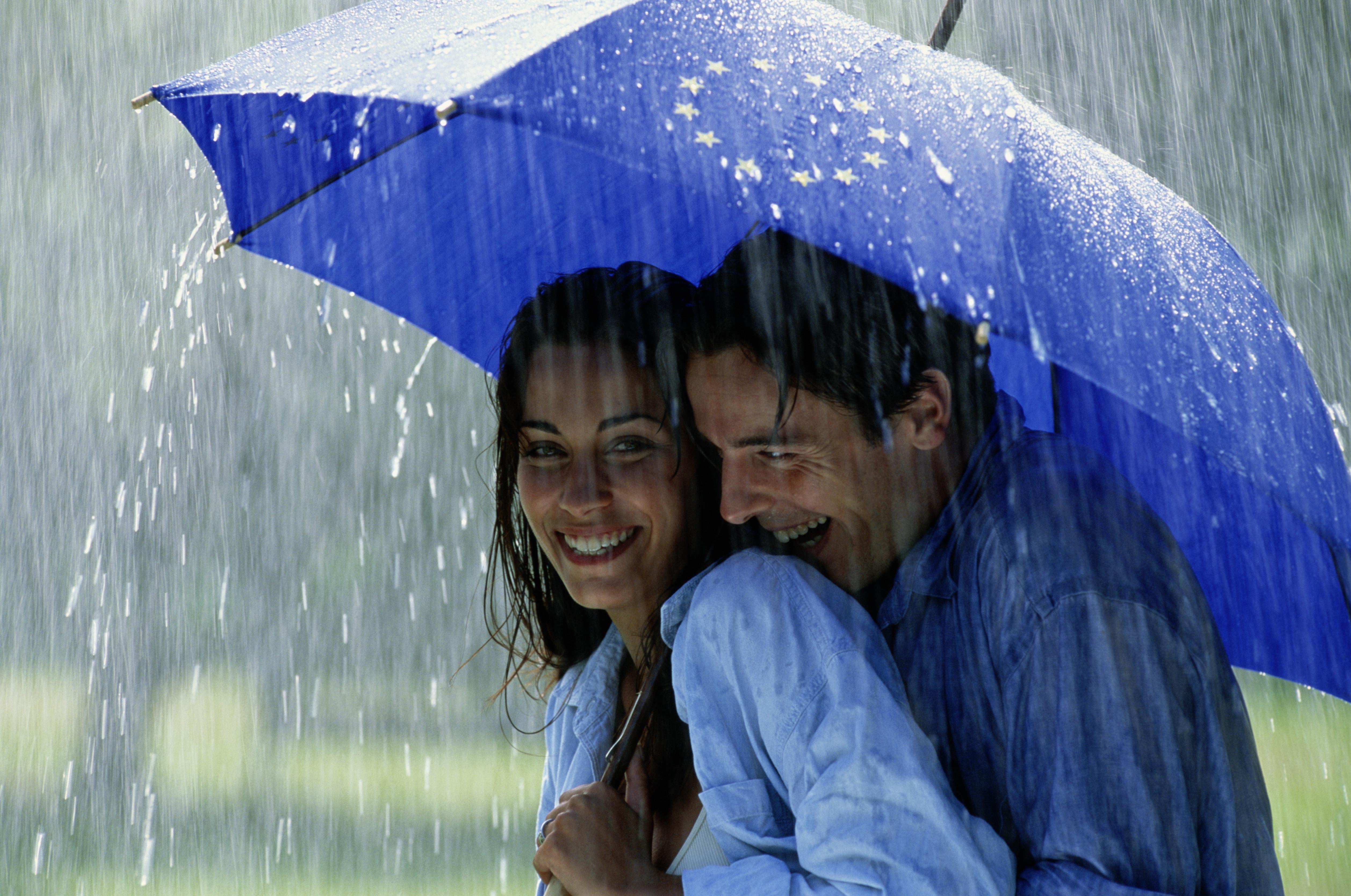 ![Двое влюбленных под дождем]()