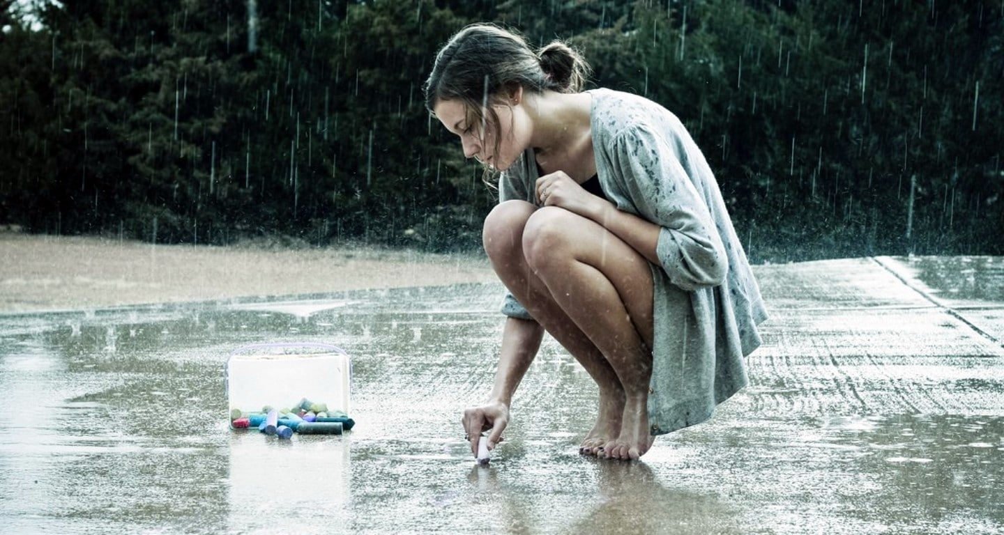 ![Девушка под дождем]()
