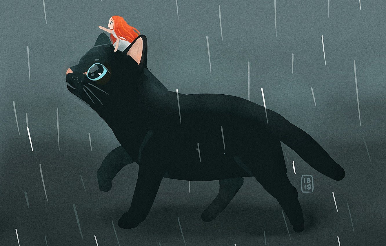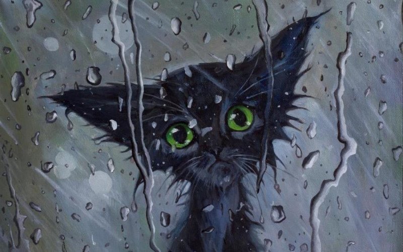 ![Кошка под дождем Хемингуэй иллюстрация]()