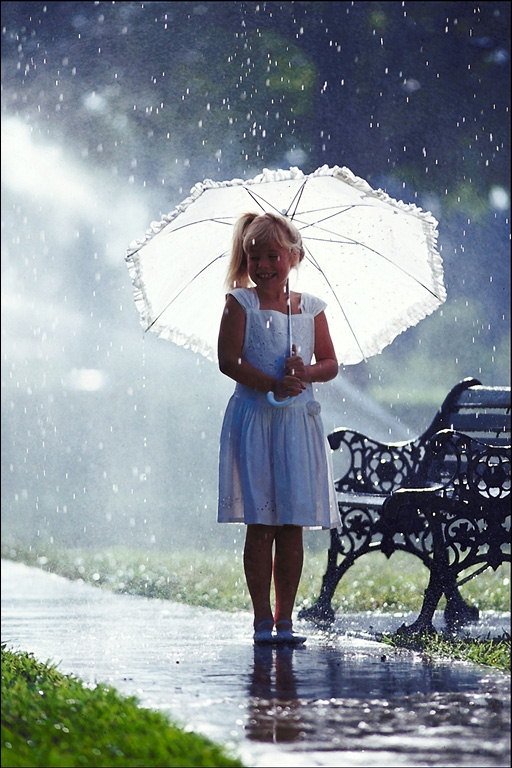 ![Девочка под дождем]()