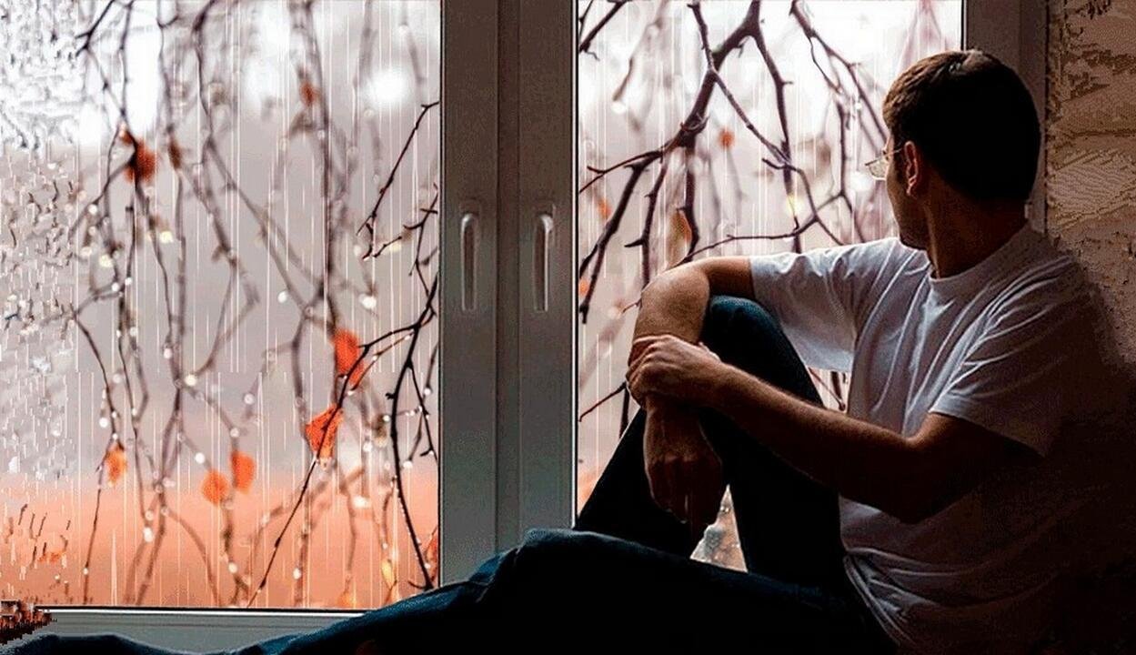 ![Мужчина у дождливого окна]()